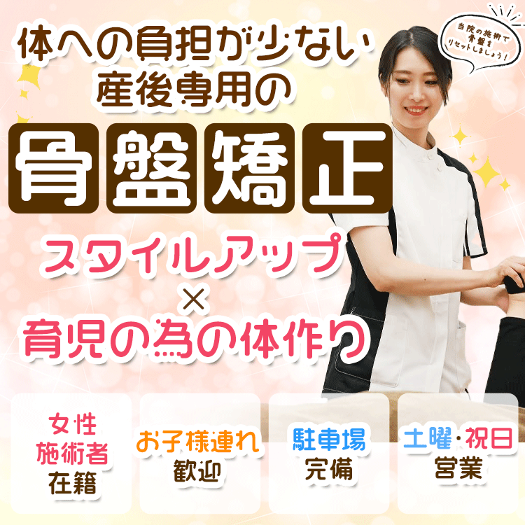 そのため、産後ケアには、一般的な腰痛改善や骨格矯正とは異なったアプローチが必要になってきます。