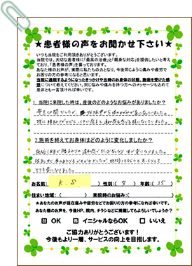 週に1回、2週間に1回の約30分の施術でここまで改善されて感動しました。子連れOKだったので、とても通いやすかったです。