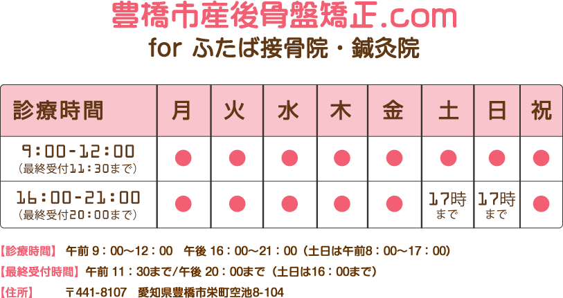 ふたば接骨院・鍼灸院式産後骨盤矯正を行います。