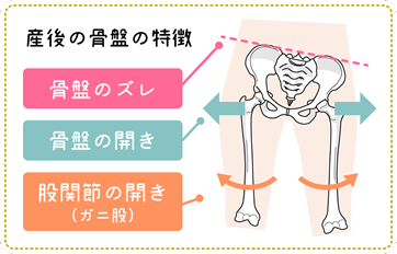 産後の骨盤は、横方向への広がりと縦方向でのゆがみが生じています。